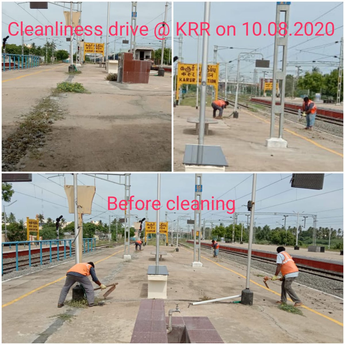 Cleanliness Week. 10 - 16 August, 2020. Cleaning activities at Karur railway station.