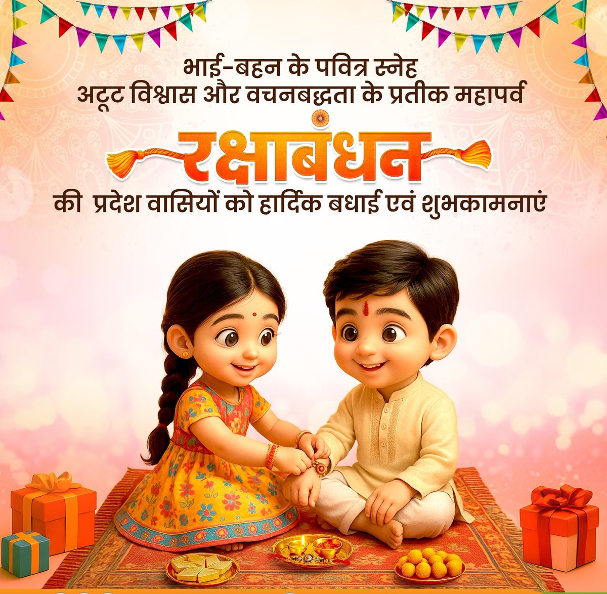 स्नेह की पवित्र गांठ, विश्वास की मौन प्रतिज्ञा, भाई-बहन के अटूट प्रेम की जीवंत अभिव्यक्ति रक्षाबंधन की देश वासियों को हार्दिक बधाई! रक्षासूत्र की नन्ही डोर सिर्फ कलाई नहीं बांधती, आत्मा को जोड़ती है। यह हर युग में मर्यादा और आत्मीयता की अमर गाथा बुनती है।