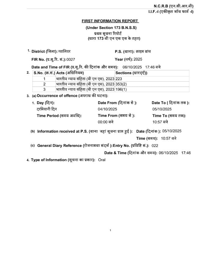 In full faith of the rule of law and the fairness of our judicial system, I am voluntarily approaching today at 02:00 PM in the office of the Superintendent of Police, District Gwalior, in connection with the FIR recently registered against me. Let it be placed on record that the…