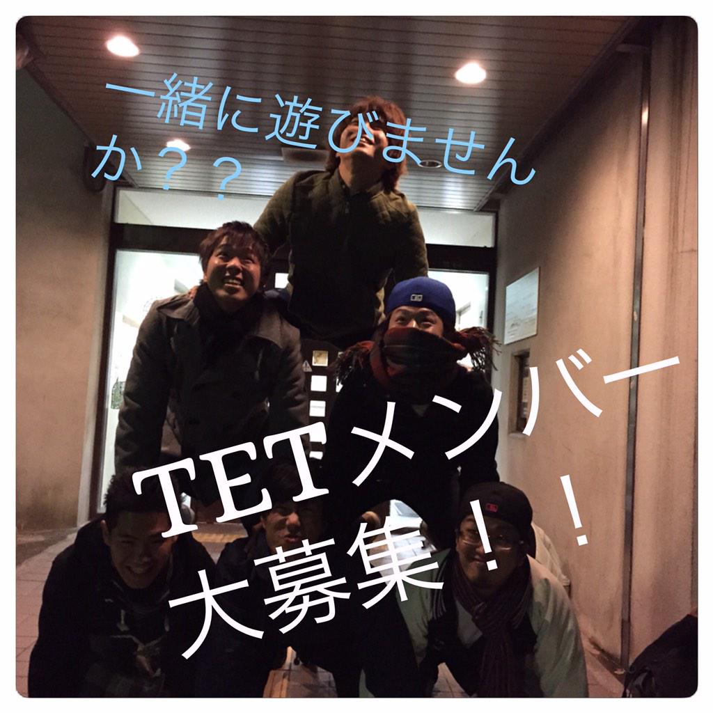 学生団体TETの定期イベント発信アカウント(*^^*)!季節感のあるモノに真逆の季節をぶち込んでくよー!こんなイベントしてみたい!とかあれば気軽にDMリプください!「やりたい! 」をカタチに!詳しくは【@TwEnTry_20】 2015.3.31新成人が集まる感謝祭2015開催! Joined October 2014-
