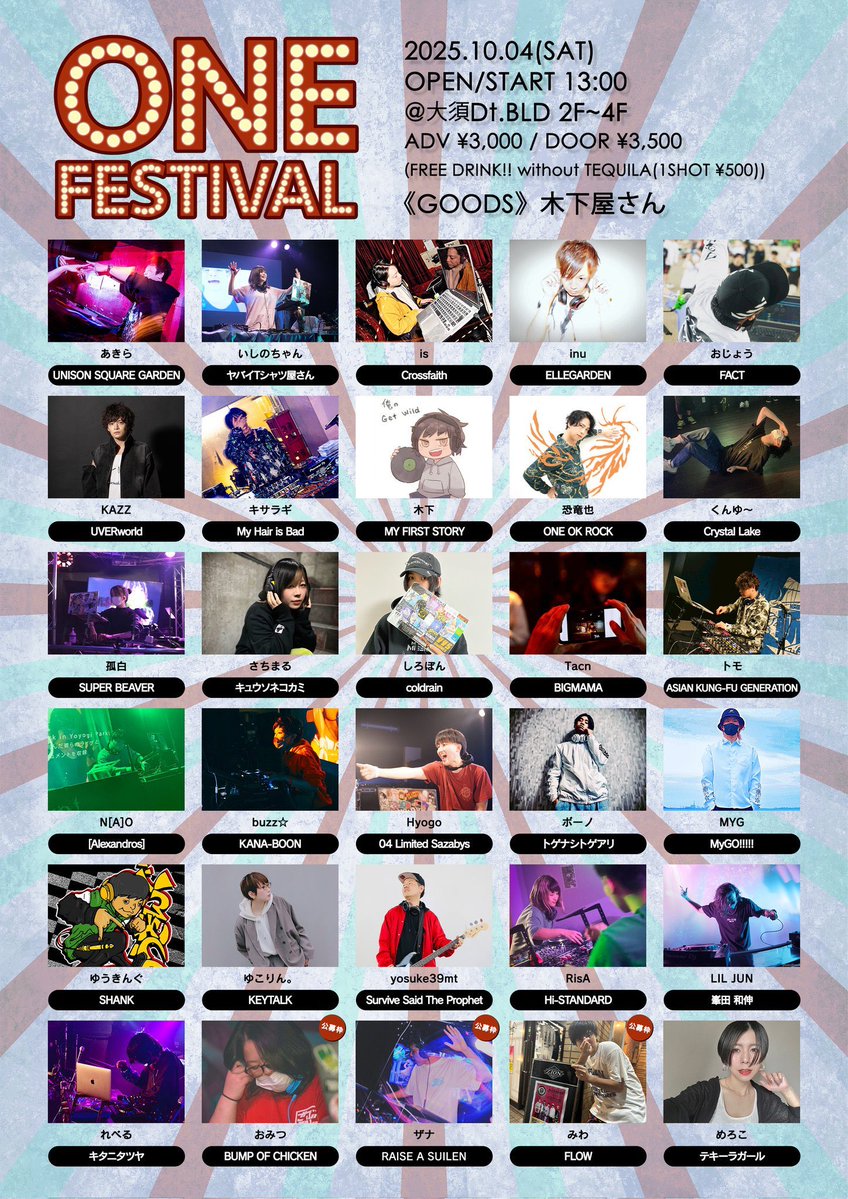 ついに今週になりました!!!!! #oafes2025 04 Limited Sazabysの良さを再認識して 感動しております🥺 みんなで楽しく暴れましょう!! 全フロア周るぞ🔥 取り置きお得なので確定の方は是非取り置きを! 飲み放題だからたくさん飲もう....