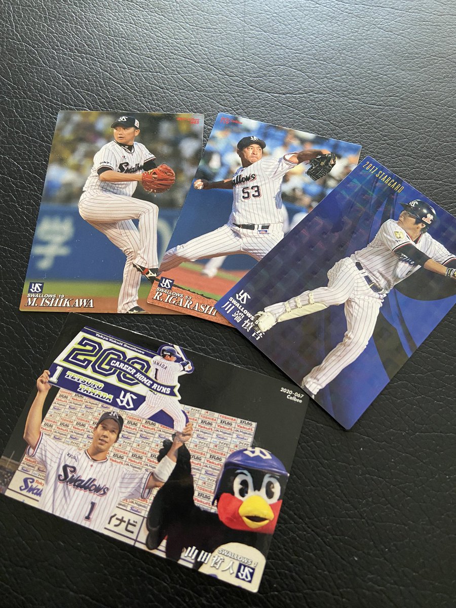 神宮球場行きたかった... 昨日からYouTube見て泣きそうになってる😢 娘が友達から貰ってきたプロ野球チップスカードの中に川端選手発見っ‼️ つば九郎&山〜田哲人も‼️ 五十嵐亮太も🤣🤣🤣 2026年はCREW会員になってCREWナビゲーターの五十嵐亮太に会いたい😁