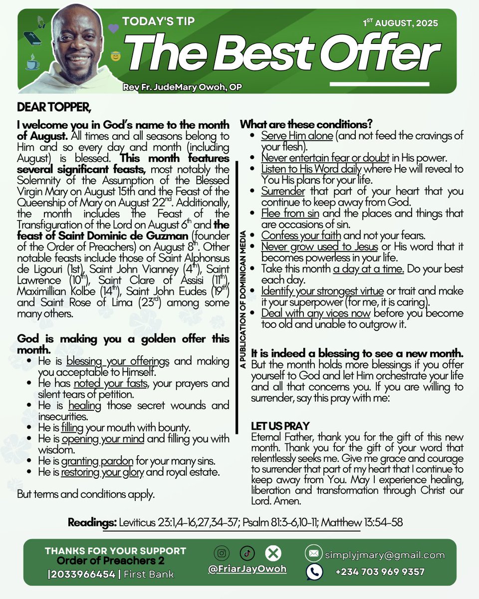 Eternal Father, it has pleased you to raise sons and daughters who walk in the footsteps of Saint Dominic de Guzman. Help them to be faithful to their preaching mission & be vessels of truth in the face of error and bless us with the fruits of their contemplation. Amen 🤍🙏🏾📖☕😇