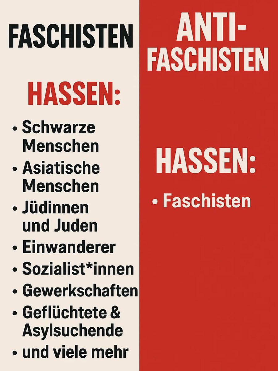 Ich bin Antifaschistin. Weil ich Demokratin bin. Weil ich Freiheit liebe. Antifaschismus tötet nicht – Faschismus schon. Trump nennt Antifaschisten Terroristen. In D ist Antifaschismus Grundgesetz. Wer dagegen ist, stellt sich gegen Freiheit & Demokratie. #IchbinAntifa