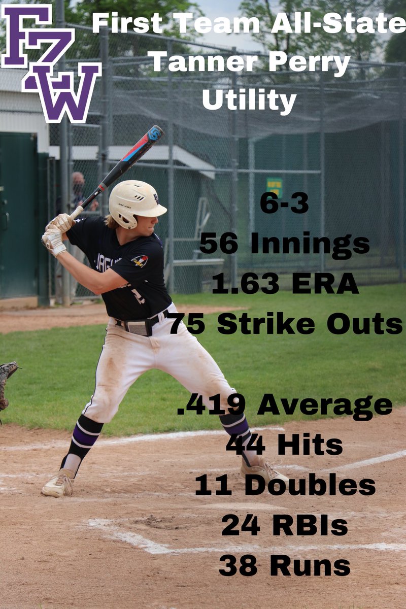 Congrats FZW All-State Players First Team Noah Hargraves (P) Tanner Perry (UT) Daniel Wissler (OF) Second Team Nolan Miller (P) Honorable Mention Mason Whiteside (IF) #FZWBaseball