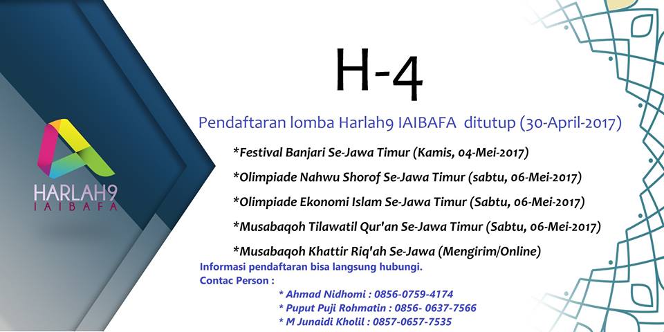 JOIN US!!! H-4 Pendaftaran Lomba Harlah Iaibafa ke-9 ditutup (30 April 2017) @iaeiindonesia @alasantri @PonpesLirboyo @nu_online 😇