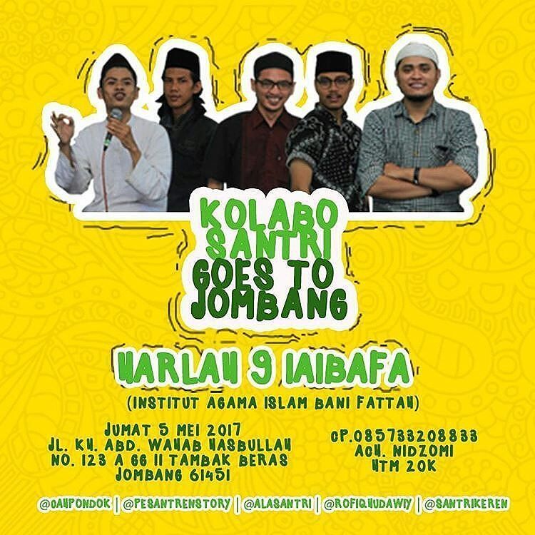 Assalamualaikum cuuuah, Arek2 jombang lan sak kitare Ayo jangan sampai ketinggalan gelaran #KOLABOSANTRI di IAIBAFA Jombang @alasantri 😍😍