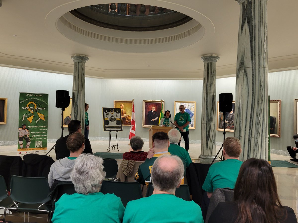 Today, the family of Logan Boulet and Green Shirt Day National Partner, the @CTACanada launched the annual #GreenShirtDay in Regina. This event recognized the support the Province of Saskatchewan has provided to the Boulet family since 2018. @SaskHealth | @CanadasLifeline