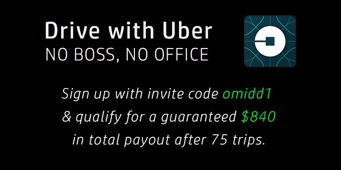Add invite code omidd1 when you sign up to drive with #uber to get a guaranteed $840 after 75 trips. #entrepreneurship