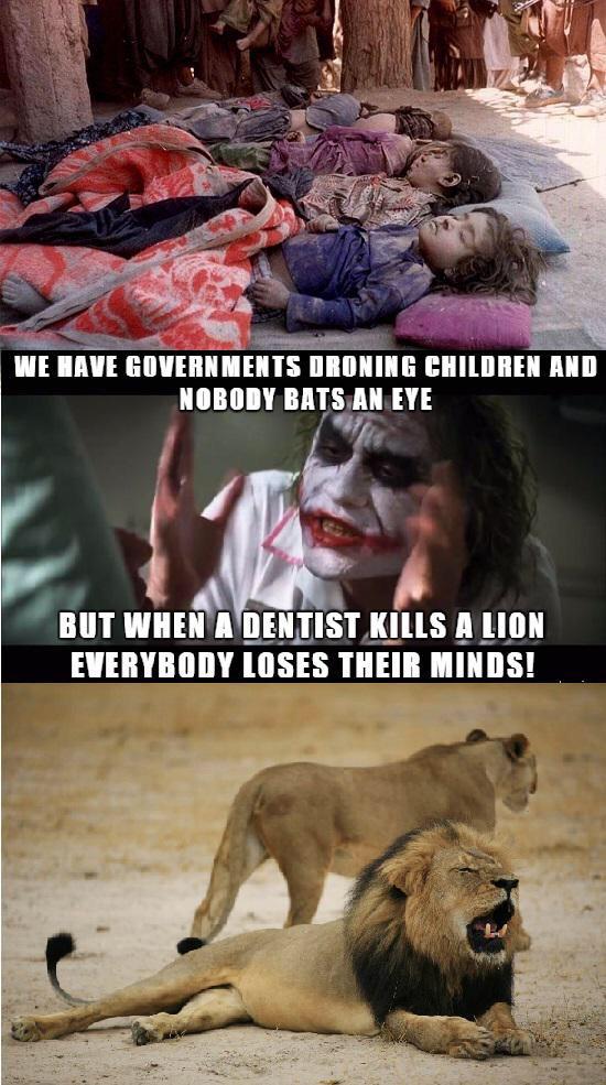 People are mad that #CecilTheLion was killed. I hope they notice their taxes pay to murder children around the world.