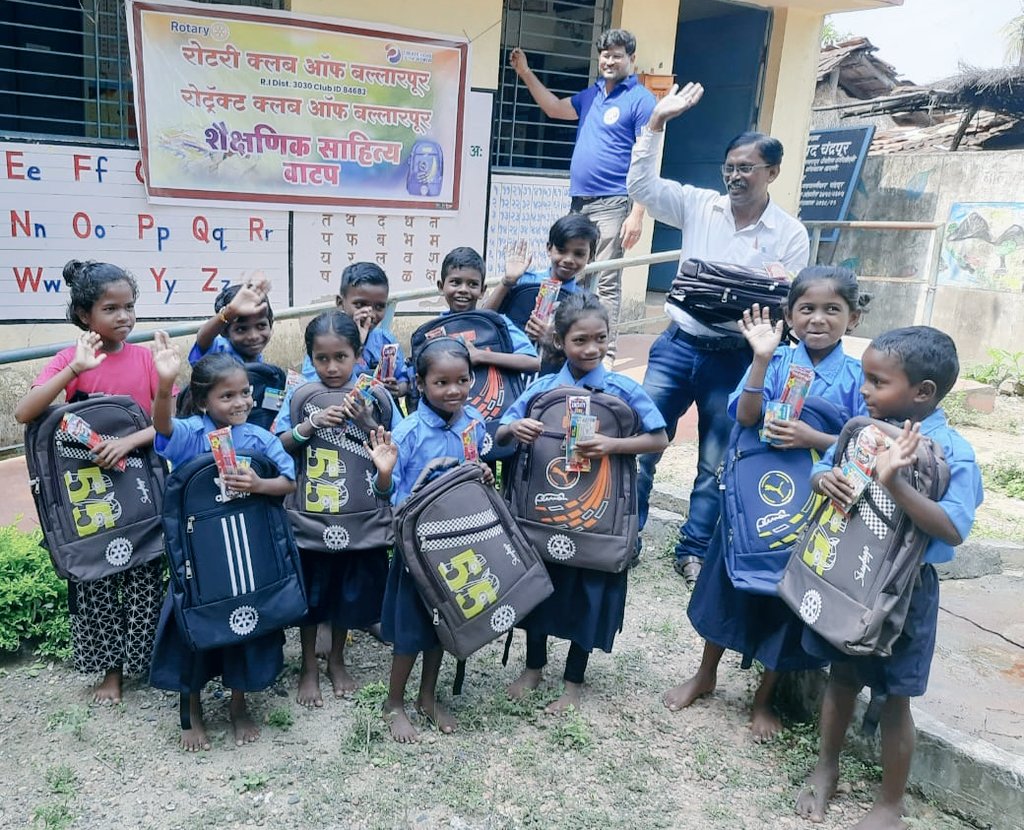 Rotary and Rotaract club Ballarpur Today on September 2, 2023, school bags and Educational kits were distributed to the students of four schools Zilla Parishad schools in rural and tribal areas, Assegaon, Gilbili, Mohali Tukum, Kortitukum. Dist3030