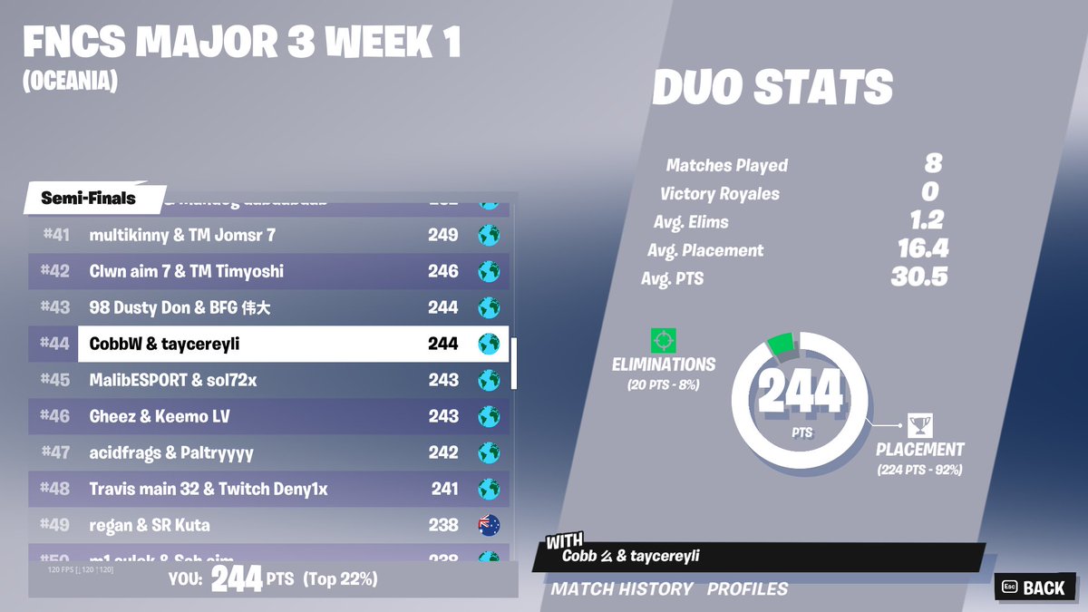 44th🏆Qualified FNCS Finals (most kills)