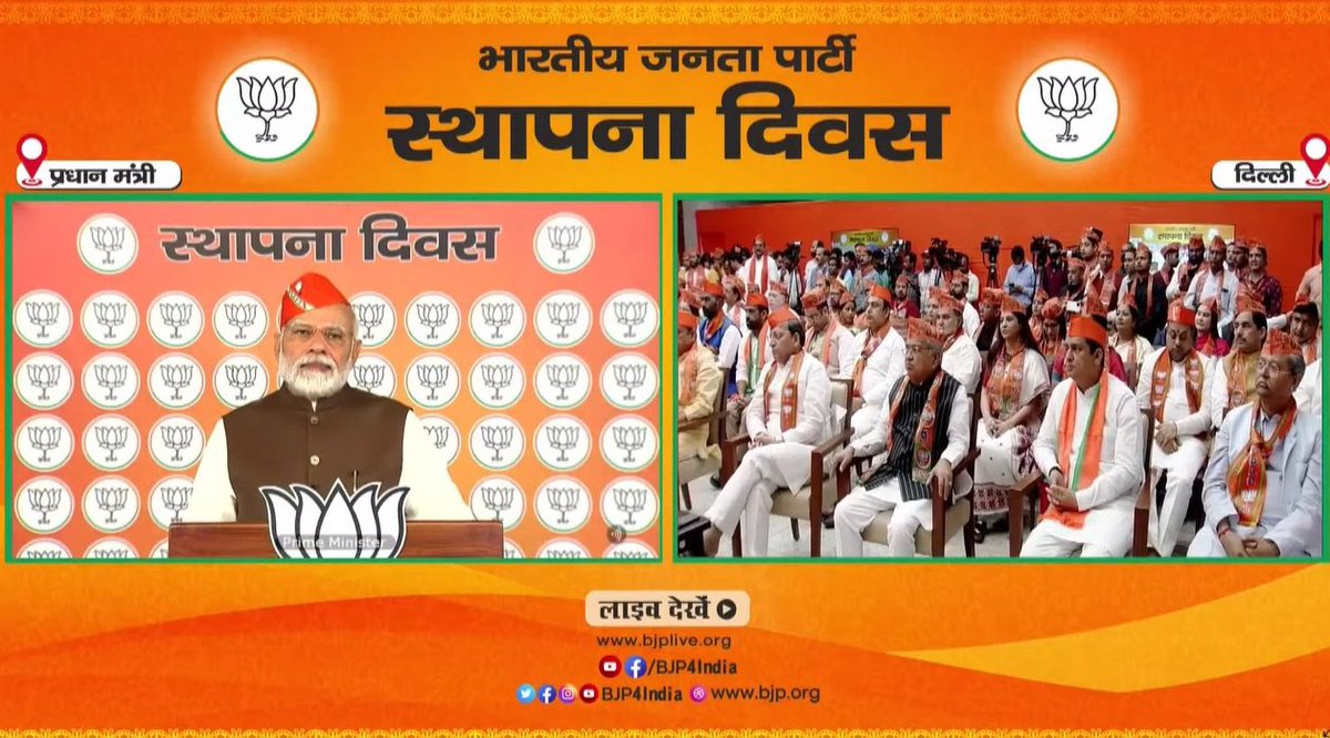 सामर्थ्यमूलं स्वात्रन्त्र्यं श्रममूलं च वैभवम् | न्यायमूलं स्वराज्यं स्यात् संघमूलं महाबलं || Attended Hon'ble PM Shri @narendramodi ji's address to the karyakartas on the 42nd Sthapna Diwas at the Parliament House Annexe.
