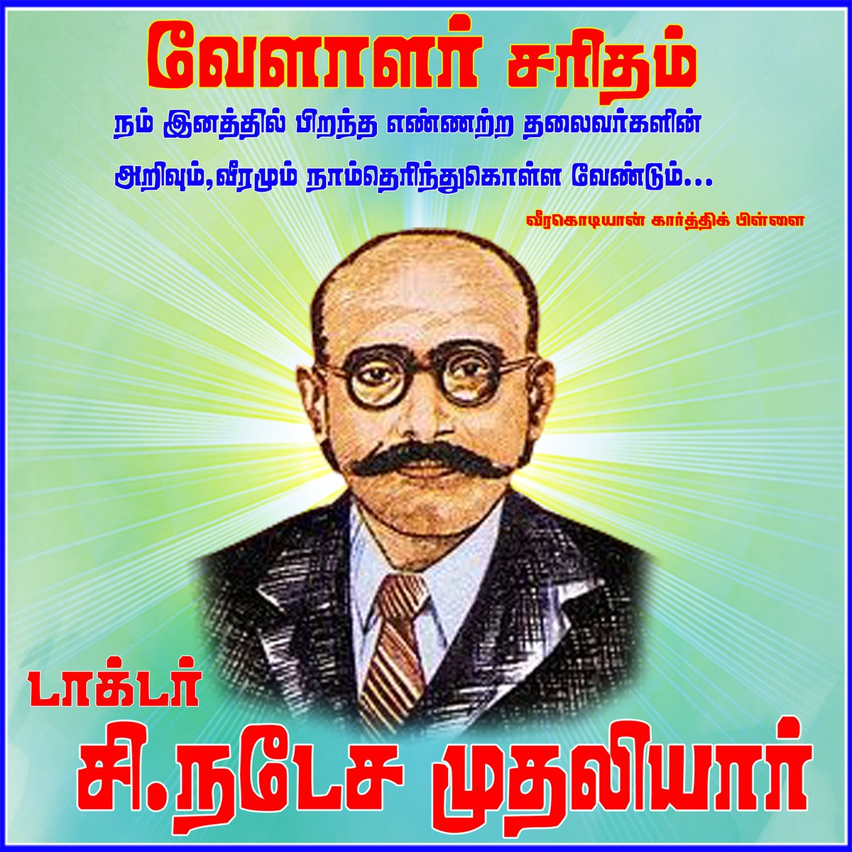 டாக்டர் சி. நடேச முதலியார் (1875-1937) நீதிக்கட்சியின் நிறுவனர் ஆவார். சென்னை நகரத்தில் திருவல்லிக்கேணியில் , பொன்னேரி துளுவ வேளாளர் குடும்பத்தில் பிறந்த இவர் இவர் சென்னை மாநிலக் கல்லூரியிலும், சென்னை மருத்துவக்கல்லூரியிலும் படித்து டாக்டர் பட்டம் பெற்றார். #TamilNadu #வேளாளர்