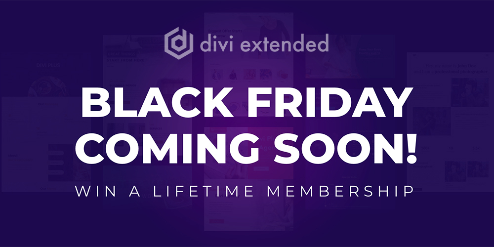 The Divi Extended Black Friday sale is coming on November 26th, the biggest sale of the year you don’t want to miss 🎉 Win a Lifetime access pass before the sale starts. 🏆 Click to participate in #DiviExtendedBlackFriday Contest 👉🏻 diviextended.com/black-friday/
