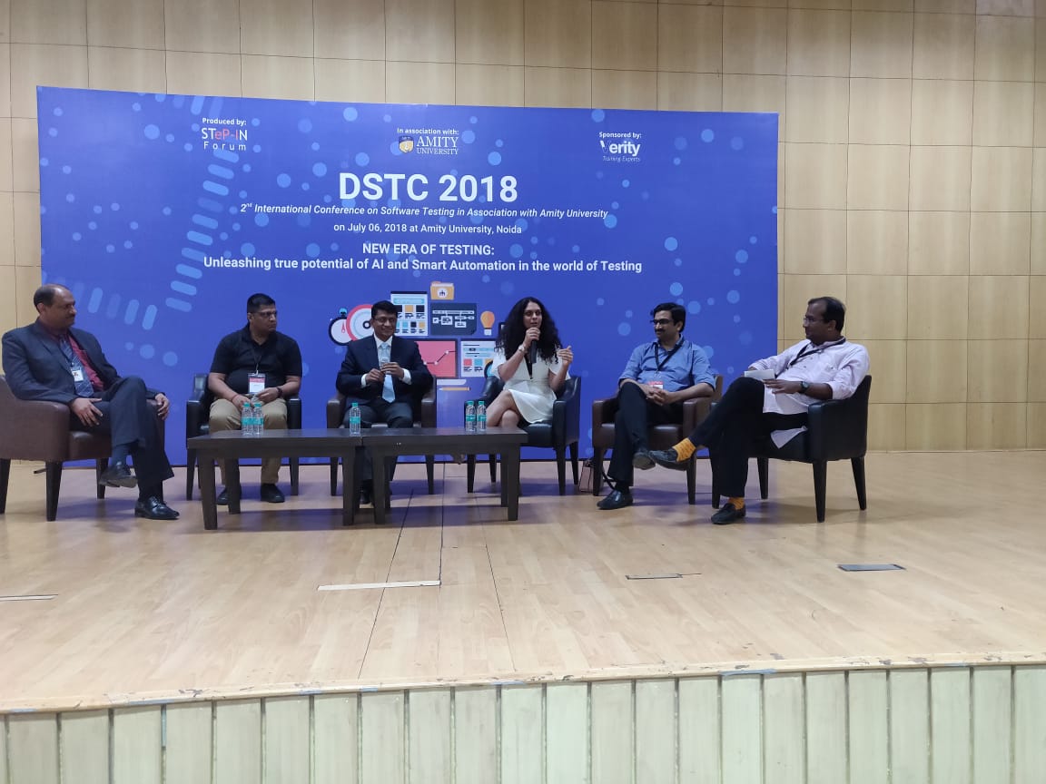 #Brainstorming session have started. Panel members having a discussion on the hot topic of Future of Testing at # DSTC2018