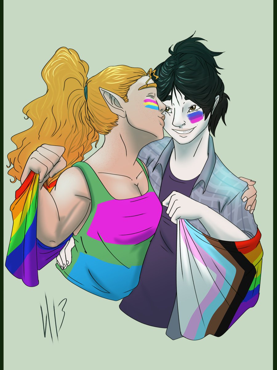 last of the D&D Pride pictures from me! featuring my shadow sorcerer Thauma and her barbarian girlfriend Shamil!