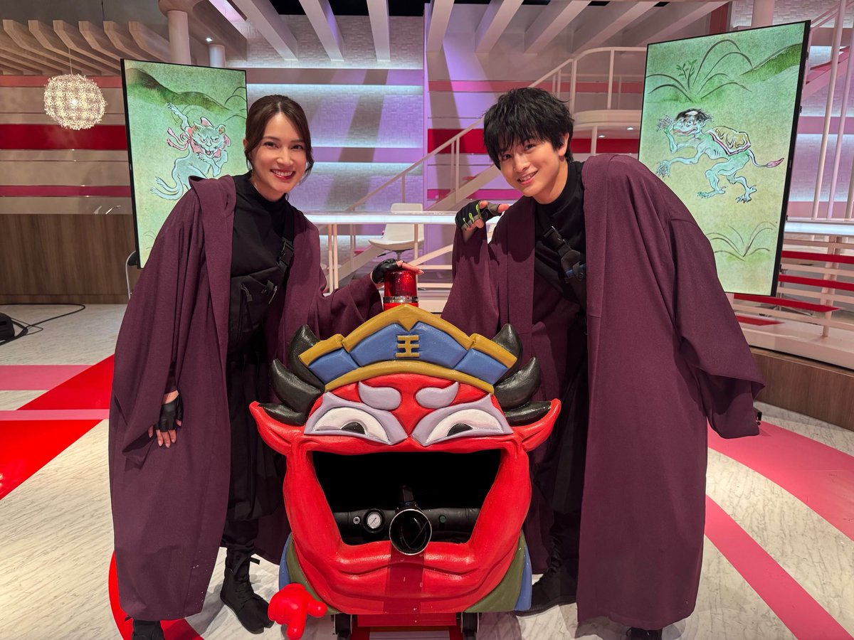 ◤蔵出しオフショット◢ 4・5話に登場した 恐怖のパイバズーカと記念撮影する 化け猫さんと河童さん 過去話はTVer、Huluで見逃し配信中 #放送局占拠 📡 次回【8話】9/6(土)よる9時 ※8/30(土)の放送はお休みです