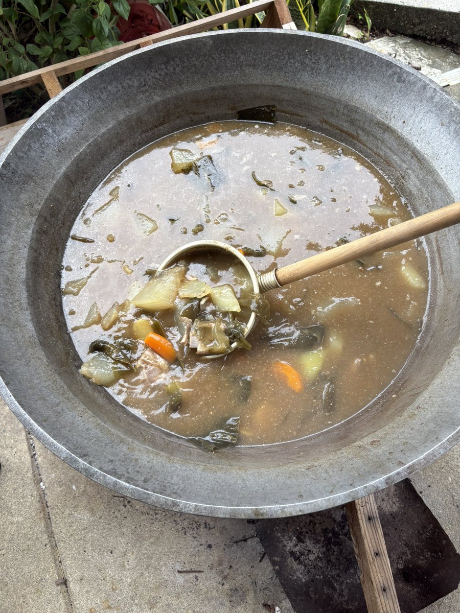 今日は職場でおじぃおばぁと一緒にワーブニ作り。汁物、そばで頂いても上等! 大鍋で作る料理は本当美味しいヽ(´▽`)/ #宮古島