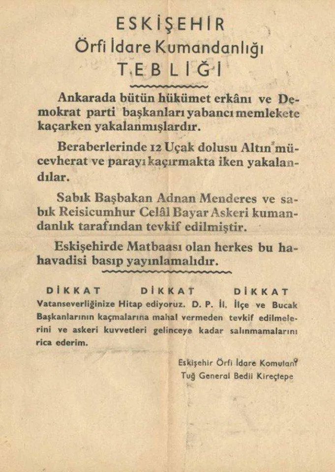 Hep aynı yalanlar.! 27 Mayıs darbesi sonrasında, Menderes'i idama götürmek için medya üzerinden sayısız yalan ortaya atılmıştı. Bu Örnek manidar:12 uçak olmayan ülkede,12 uçak dolusu altın kaçırmak. Dağıtılan bir bildiride matbaası olan herkesten bu haberi yayması istenmişti.